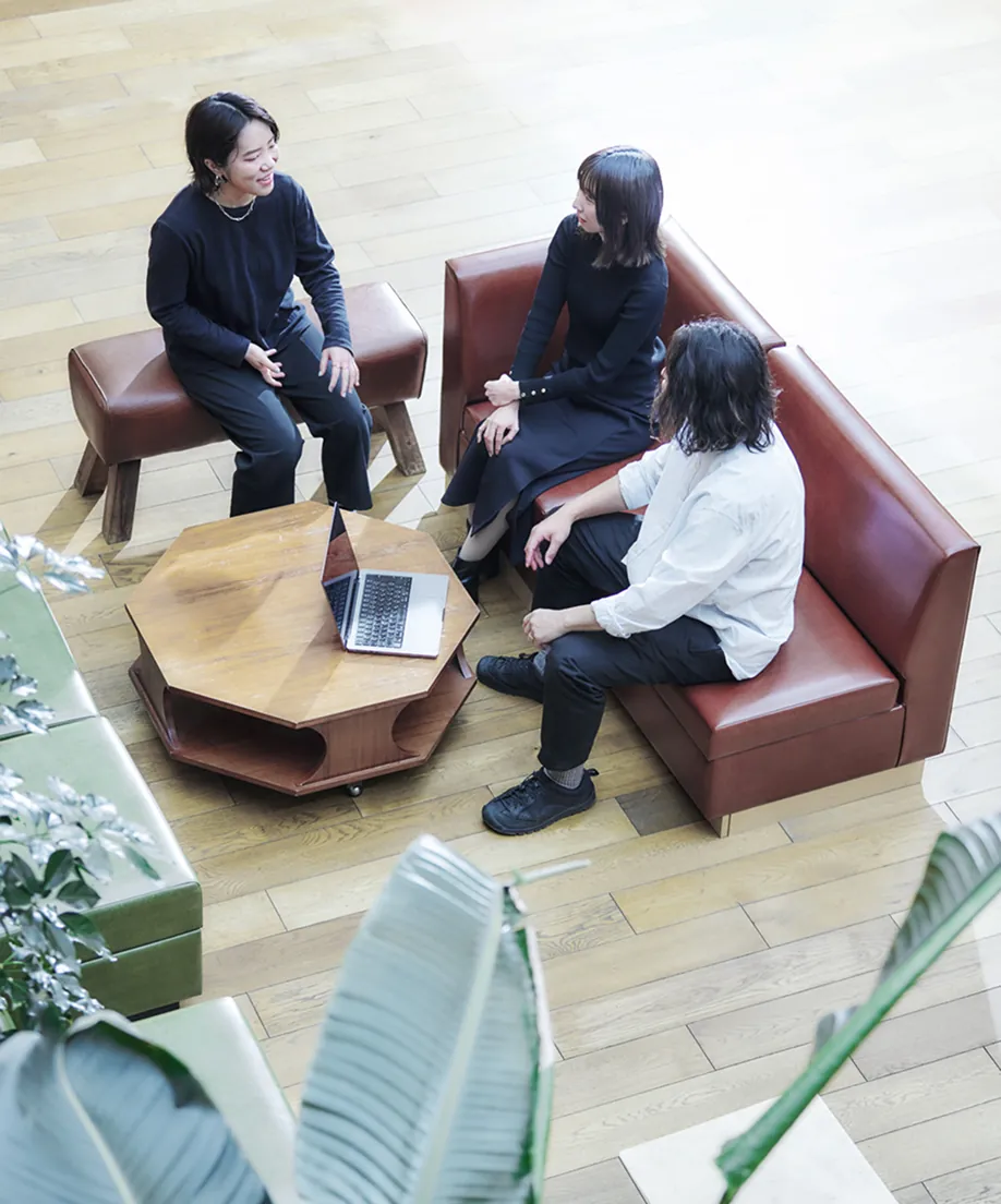 クリエイティブなアイデアが生まれる雰囲気を演出し、フラットなコミュニケーションを促進します。